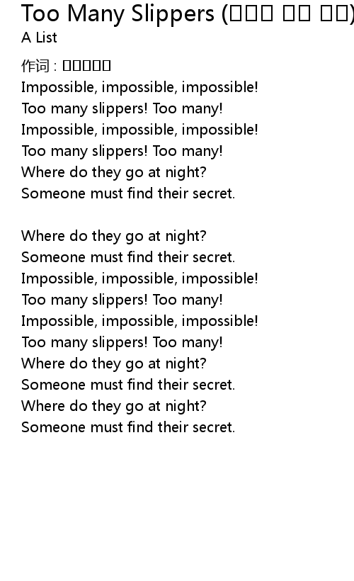 | 歌曲 | Too Many Slippers (춤추는 여섯 공주) |