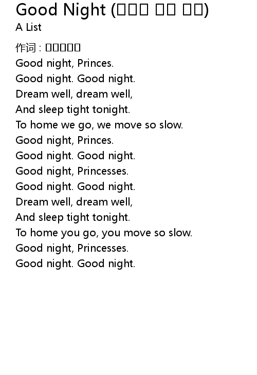 | 歌曲 | Good Night (춤추는 여섯 공주) |