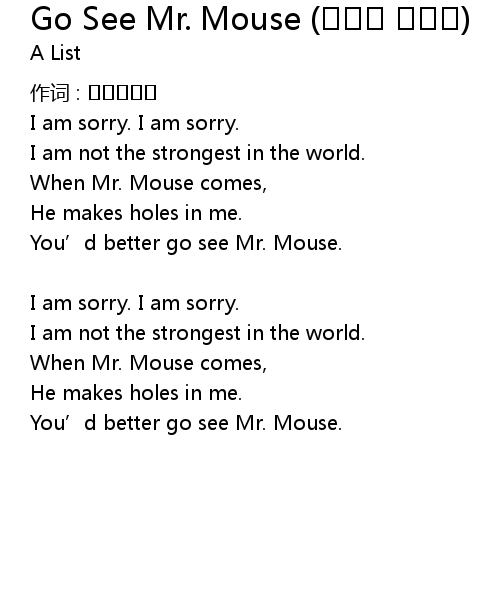 | 歌曲 | Go See Mr. Mouse (생쥐의 결혼식) |