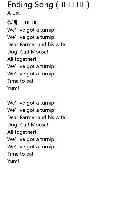 | 歌曲 | Ending Song (커다란 순무) |