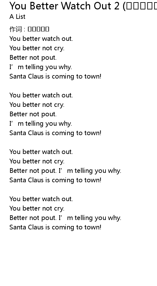 | 歌曲 | You Better Watch Out 2 (크리스마스 선물 목록) |