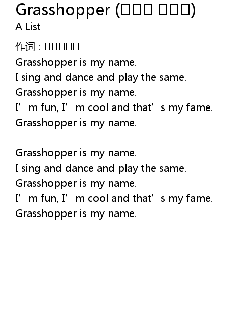 | 歌曲 | Grasshopper (개미와 베짱이) |