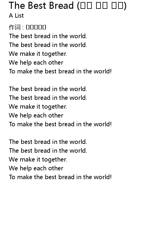 | 歌曲 | The Best Bread (붉은 꼬마 암탉) |