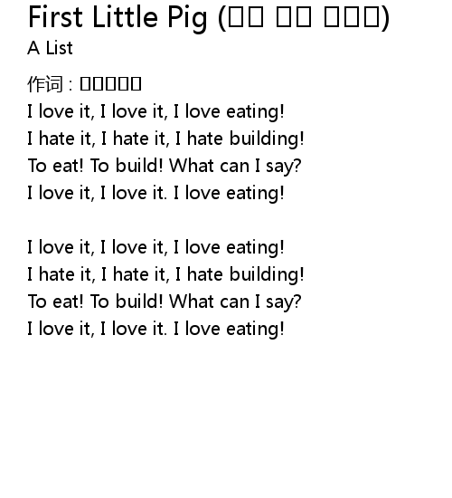 | 歌曲 | First Little Pig (아기 돼지 삼형제) |