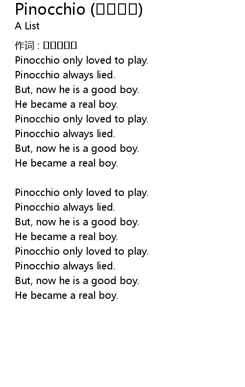 | 歌曲 | Pinocchio (피노키오) |