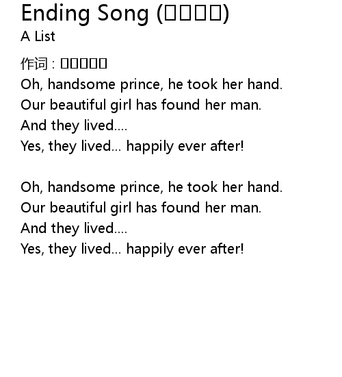 | 歌曲 | Ending Song (백설공주) |