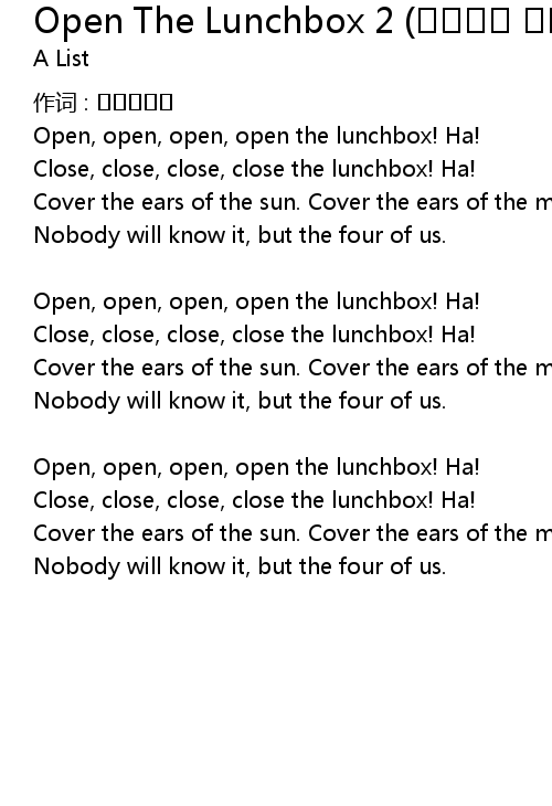 | 歌曲 | Open The Lunchbox 2 (알리바바 이야기) |