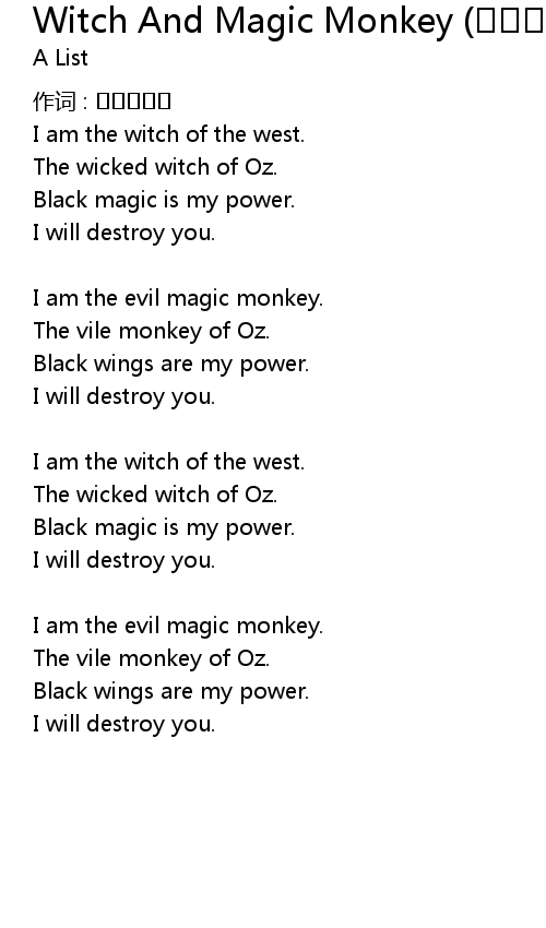 | 歌曲 | Witch And Magic Monkey (오즈의 마법사) |