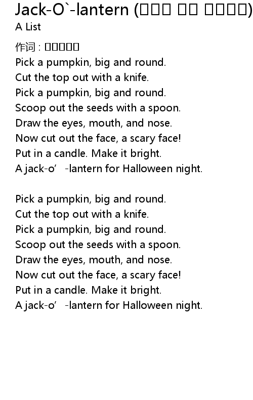 | 歌曲 | Jack-O`-lantern (할로윈 밤의 호박귀신) |