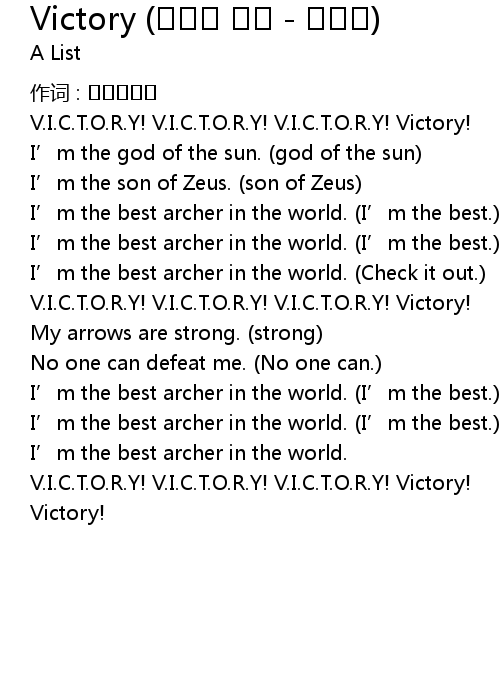 | 歌曲 | Victory (그리스 신화 - 아폴로) |