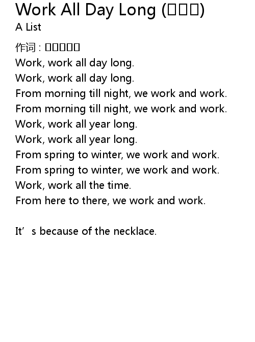 | 歌曲 | Work All Day Long (목걸이) |