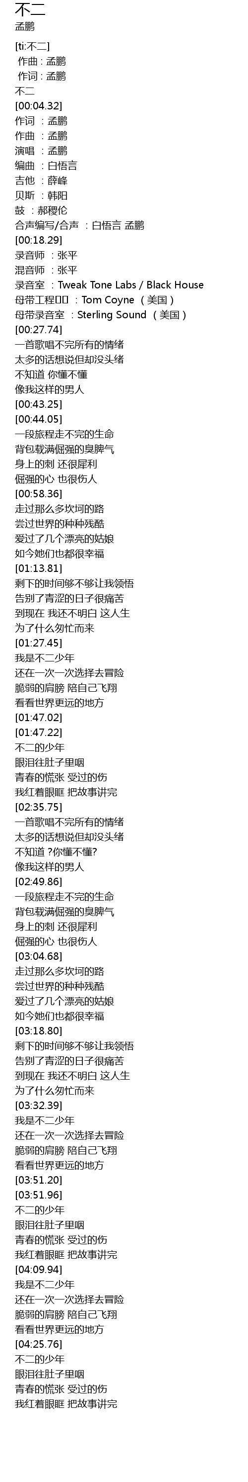 | [04:10.91] | 我是不二少年 |