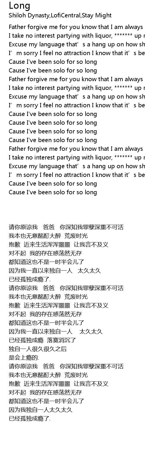 | [00:58.65] | Cause I've been solo for so long |