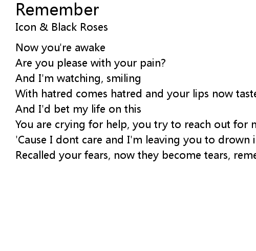 | Recalled your fears, now they become tears, remember I once needed you |