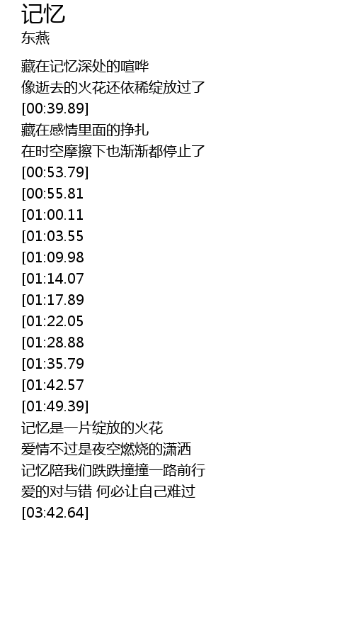 | [03:25.58] | 记忆陪我们跌跌撞撞一路前行 |