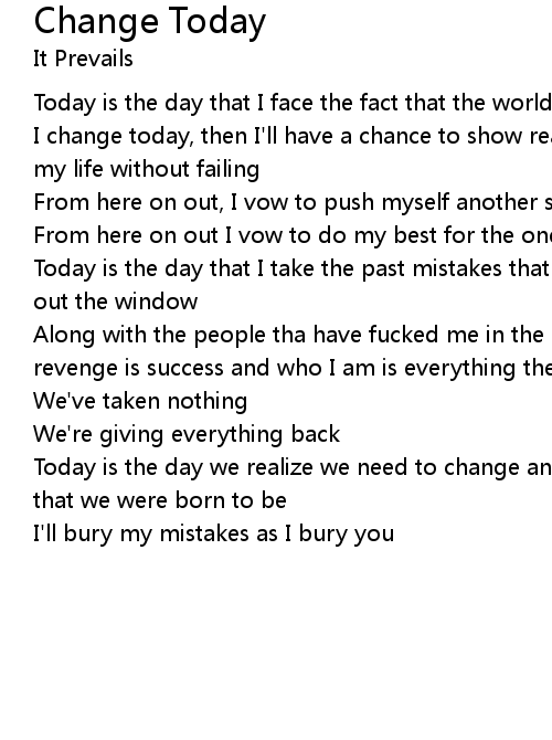 Today is the day that I face the fact that the world is what I make of it and if I change today, then I'll have a chance to show real true love for one thing in my life without failing