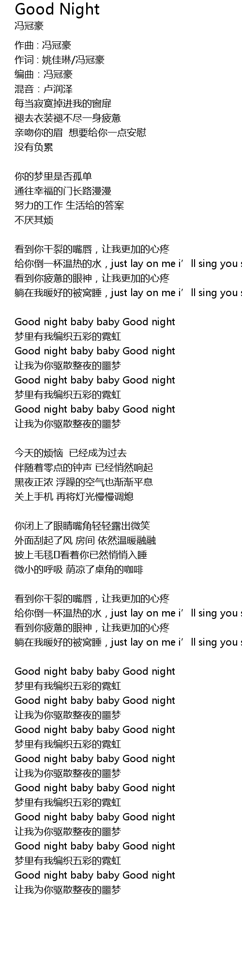 | Good night baby baby Good night | |