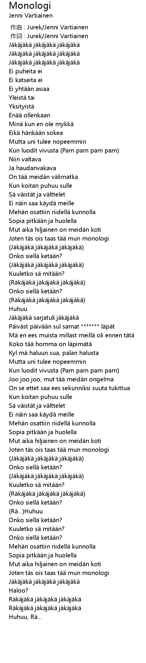 | [03:07.61] | Joten t s ois taas t mun monologi |