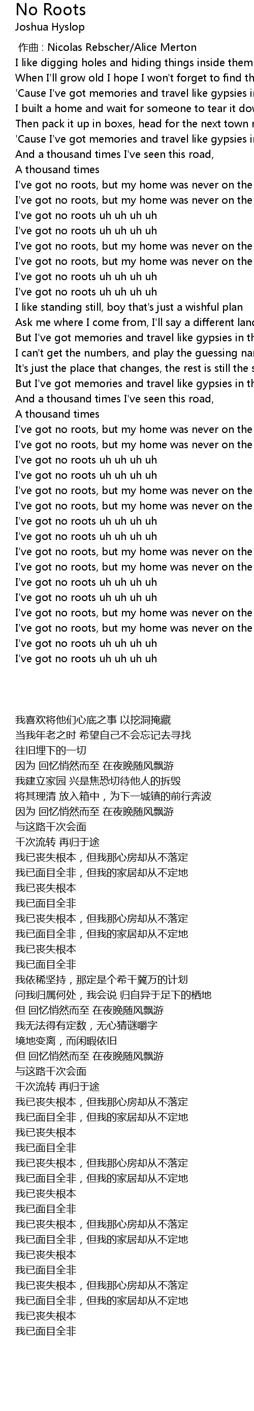 | [02:17.110] | I' ve got no roots uh uh uh uh |