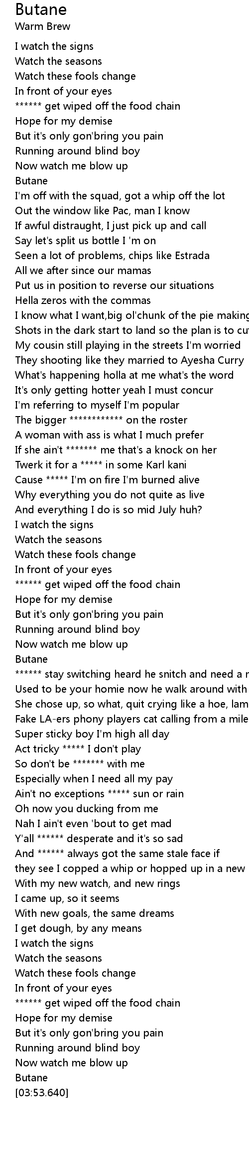 | [01:37.623] | Twerk it for a ***** in some Karl kani |