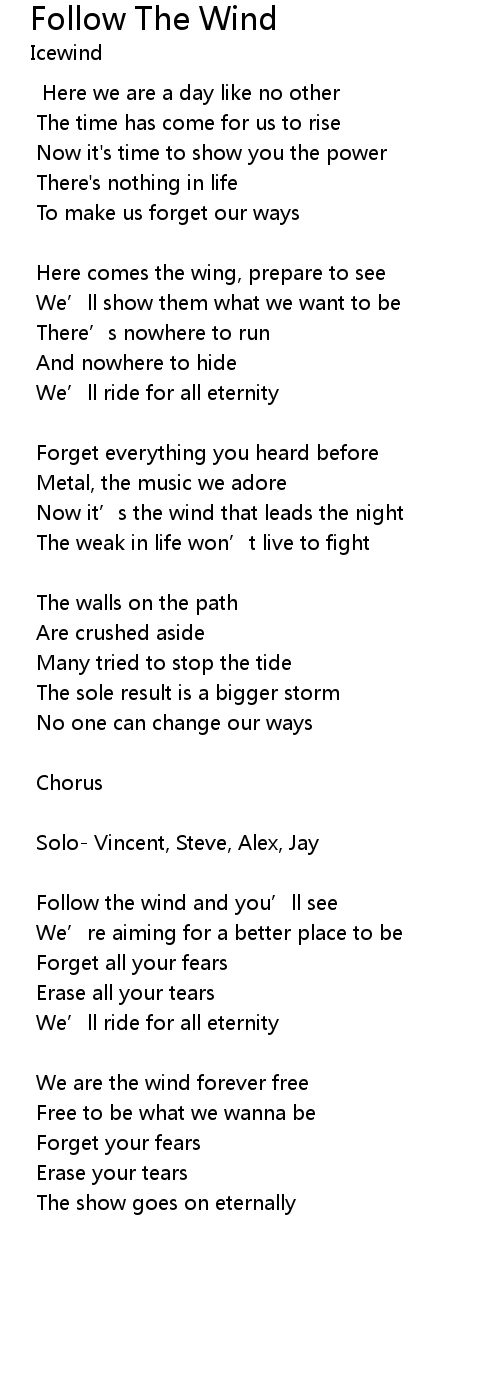 | Follow the wind and you' ll see | |
