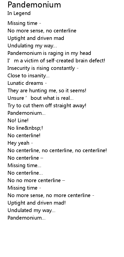 | Pandemonium is raging in my head | |