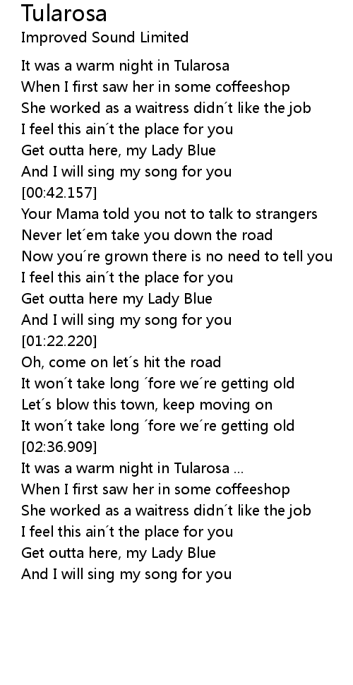 | [01:13.750] | Get outta here my Lady Blue |