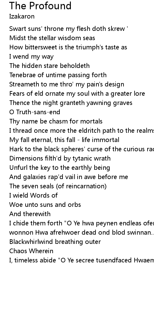 I, timeless abide "O Ye secree tusendfaced Hwaem eal ayet Tac min gyft cyndliz" |