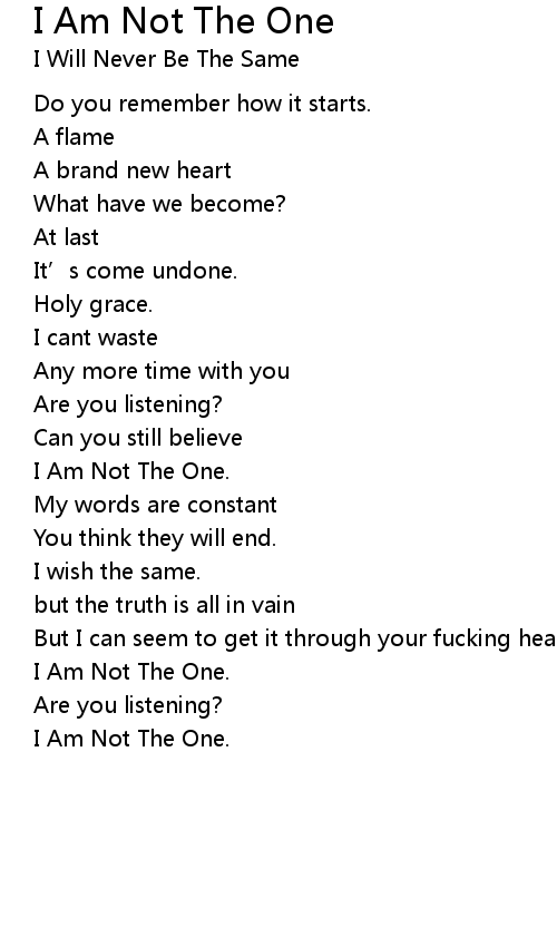 | I Am Not The One. |