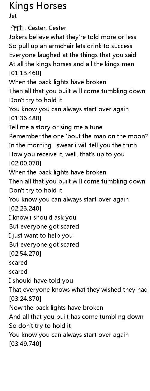 | [00:53.900] | Jokers believe what they' re told more or less |