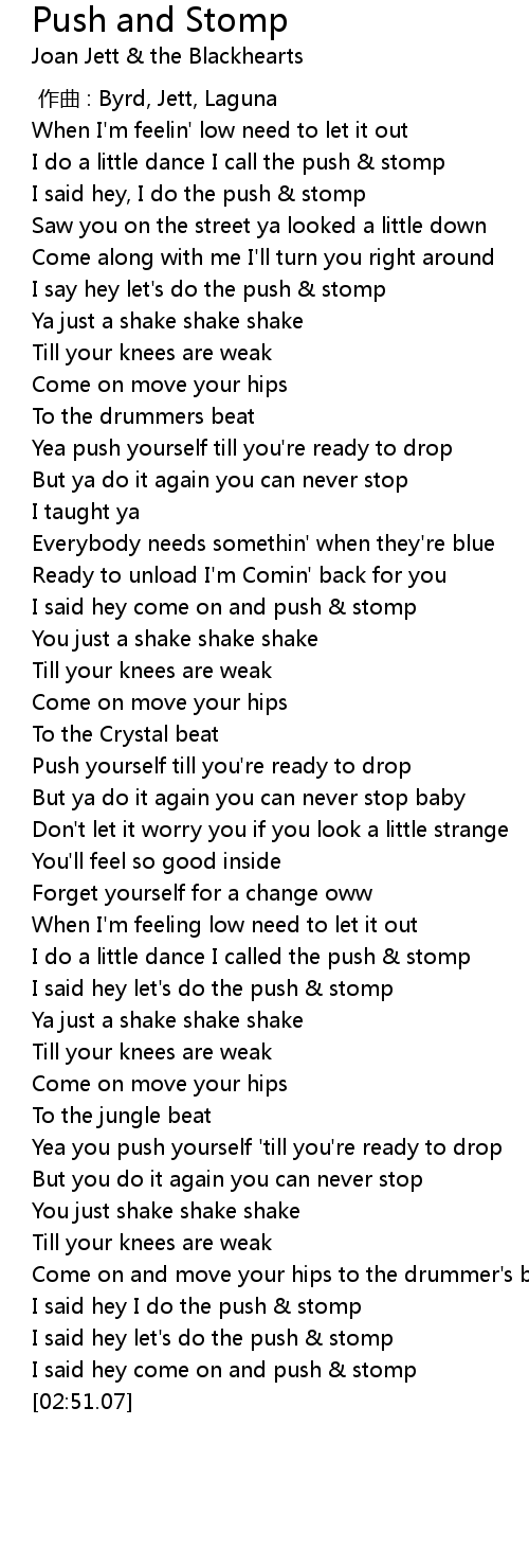 | [02:01.18] | I do a little dance I called the push & stomp |