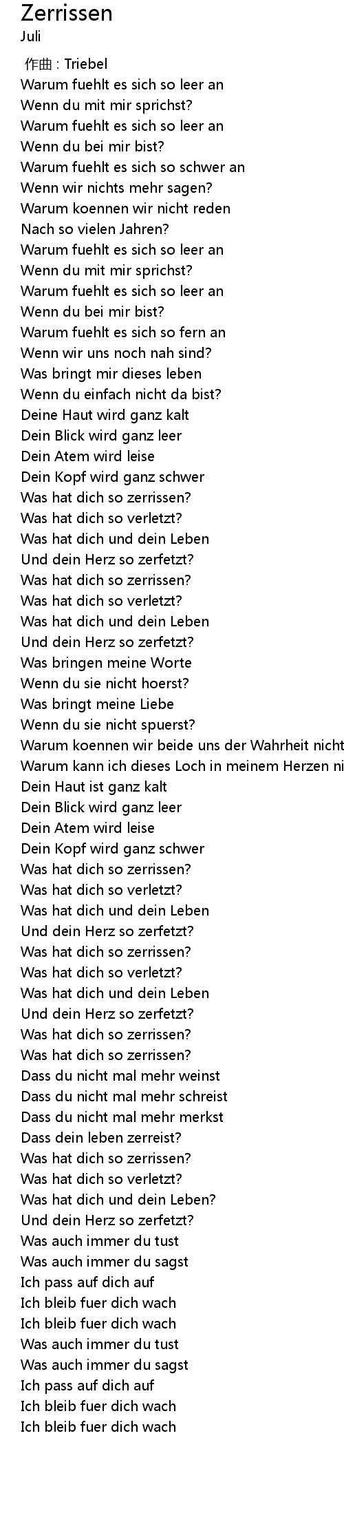 | [00:46.00] | Was hat dich so zerrissen? |