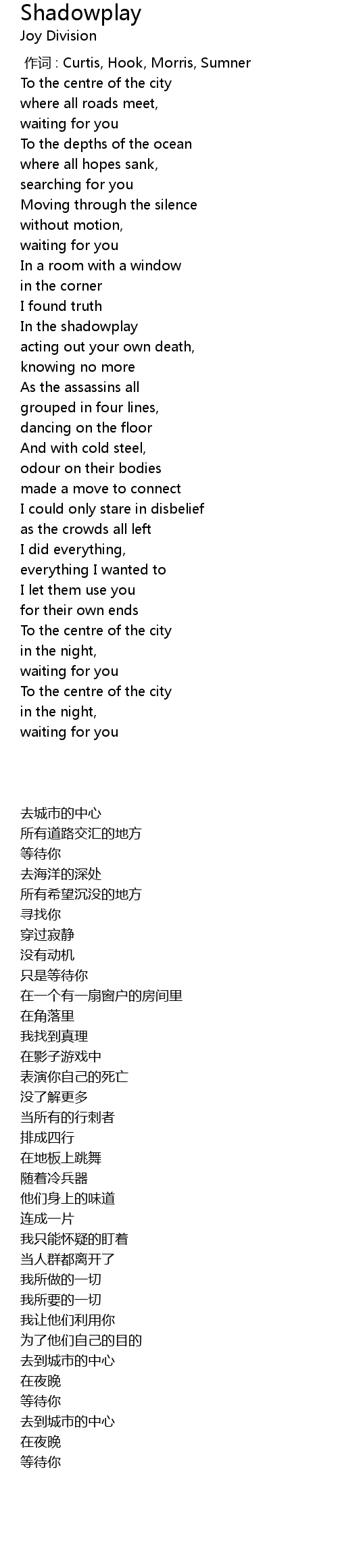 | 歌曲 | Shadowplay |