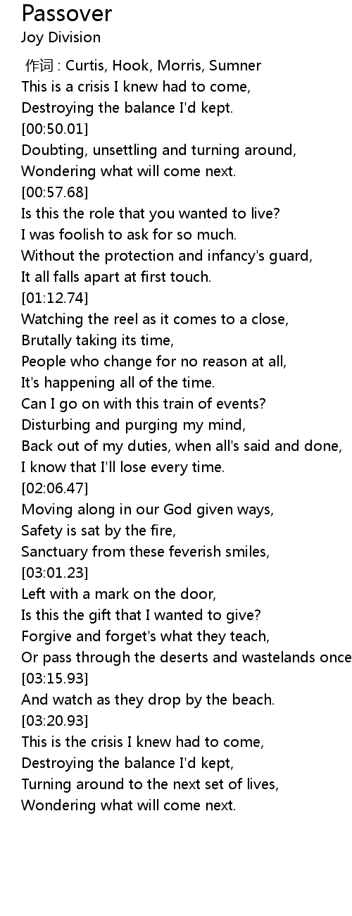 | [00:00.00] | 作词 : Curtis, Hook, Morris, Sumner |