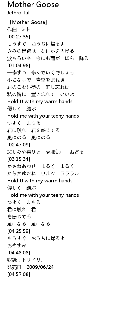 | [04:36.05] | もうすぐ おうちに帰るよ |