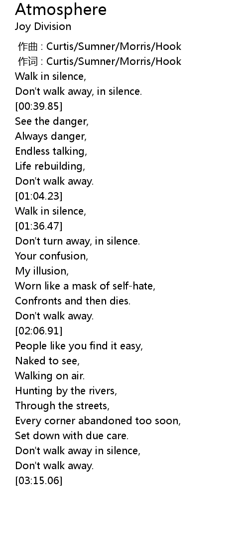 | [00:25.93] | Walk in silence, |