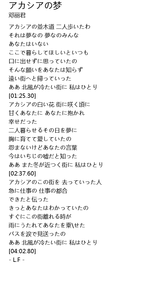 | [01:37.58] | アカシアの白い花 街に咲く頃に |