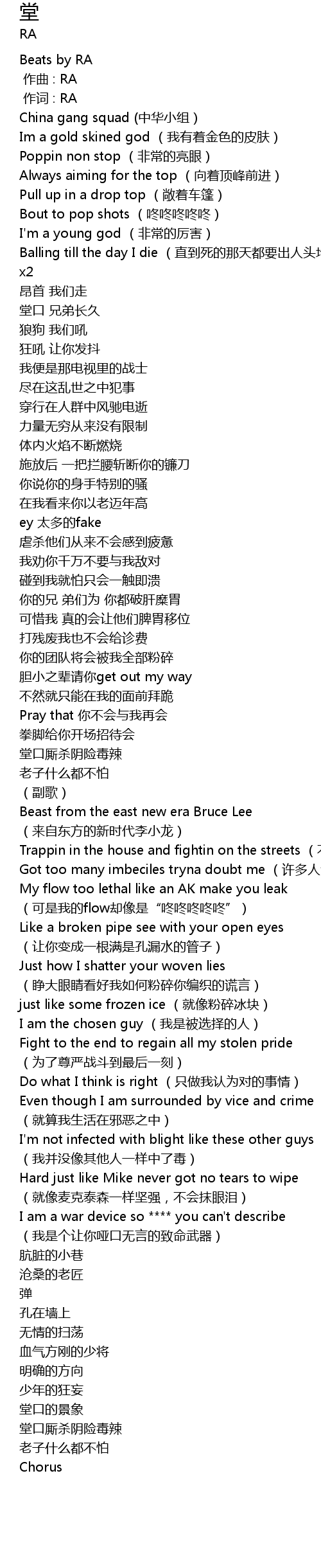 | [01:32.269] | My flow too lethal like an AK make you leak ke shi wo de flow que xiang shi" dong dong dong dong dong" |