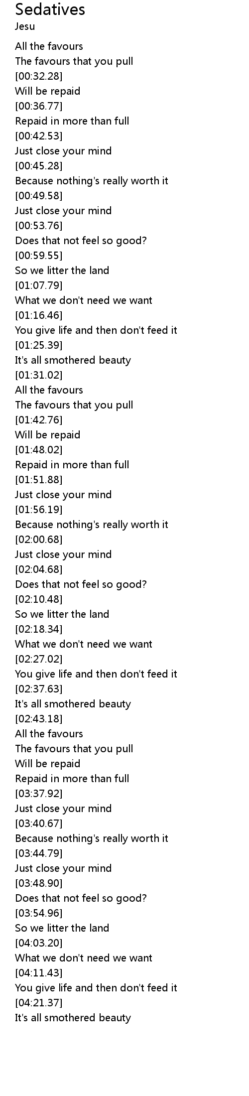 | [04:24.42] | It's all smothered beauty |