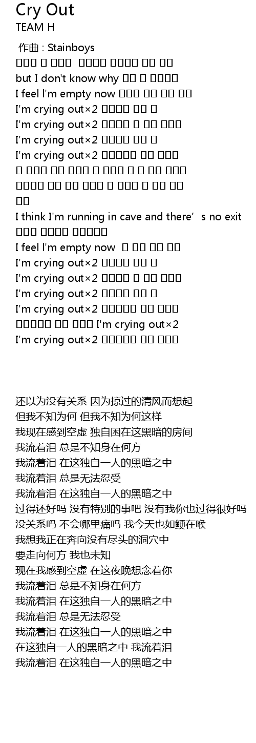| [02:36.490] | I'm crying out×2 혼자있는이 어둠 속에서 |