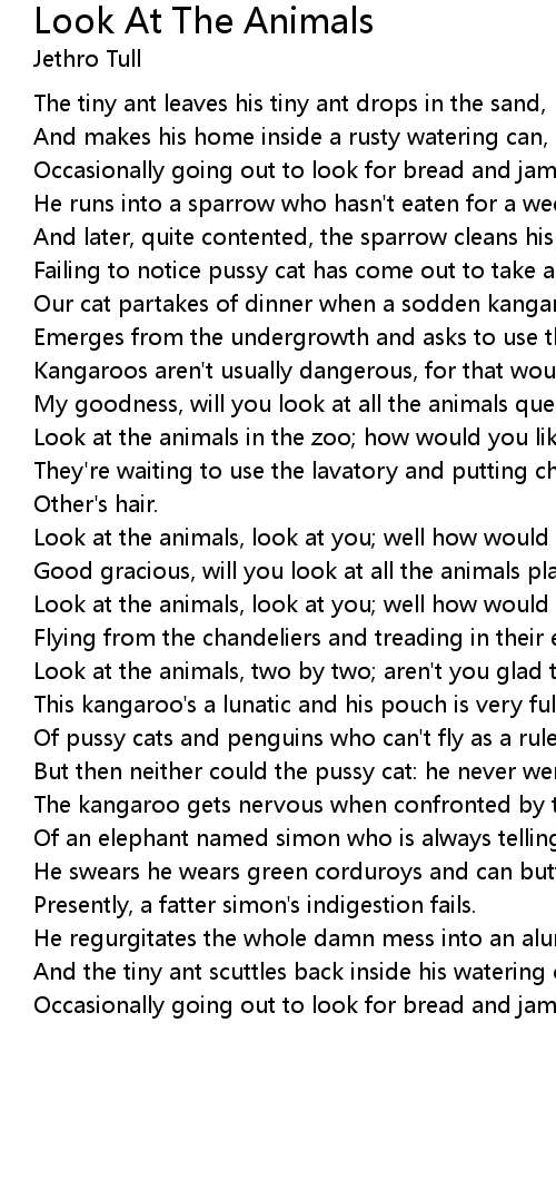Look at the animals, two by two; aren't you glad to be one? |