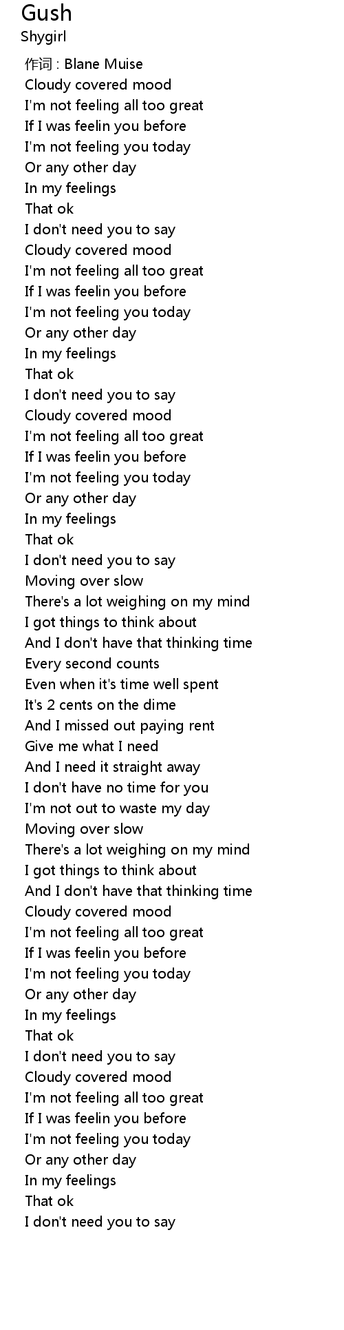 | [00:00.000] | 作词 : Blane Muise |