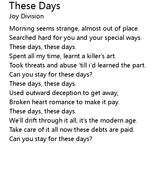 | 歌曲 | These Days |