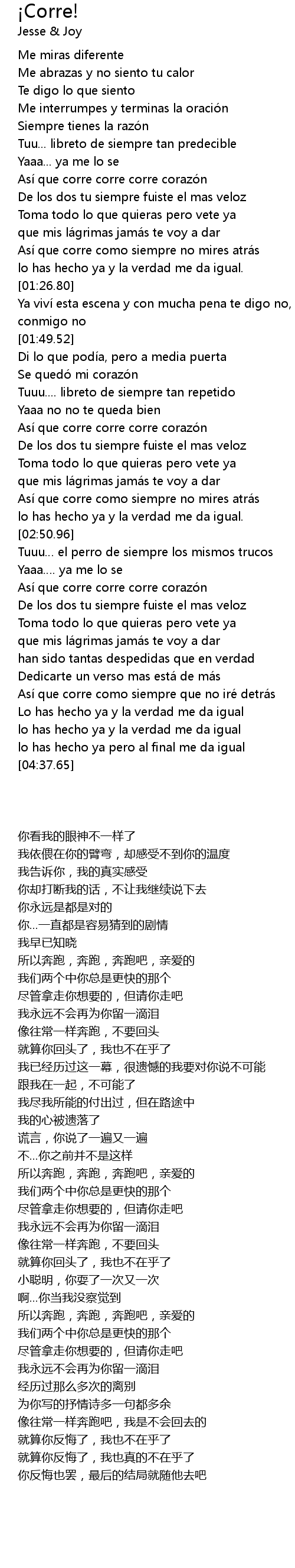 | [03:30.95] | Así que corre corre corre corazó n |