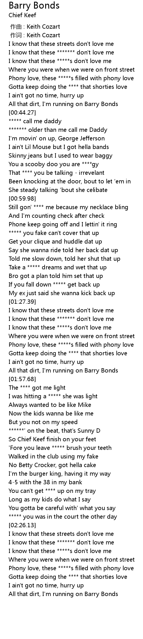 | [02:53.41] | All that dirt, I'm running on Barry Bonds |