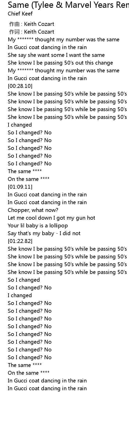 | [00:15.26] | In Gucci coat dancing in the rain |