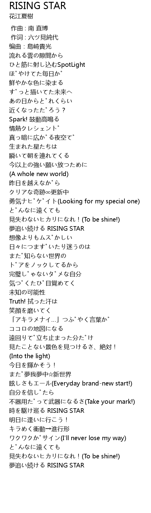 | [01:16.373] | 夢追い続ける RISING STAR |