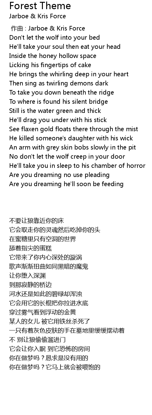 | [01:42.000] | No don' t let the wolf creep in your door |