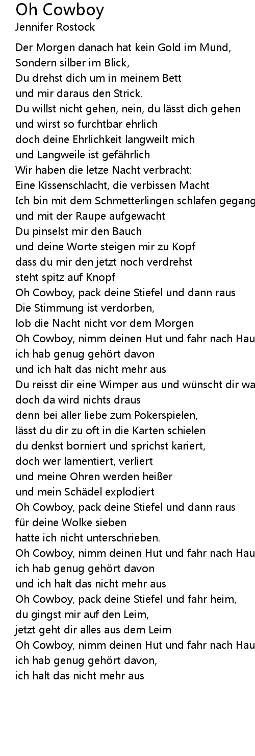 | Oh Cowboy, pack deine Stiefel und fahr heim, | |
