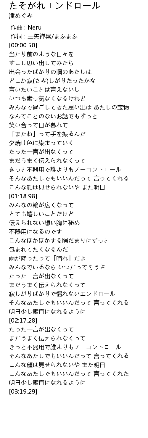 | [02:45.05] | きっと不器用で誰よりもノーコントロール |